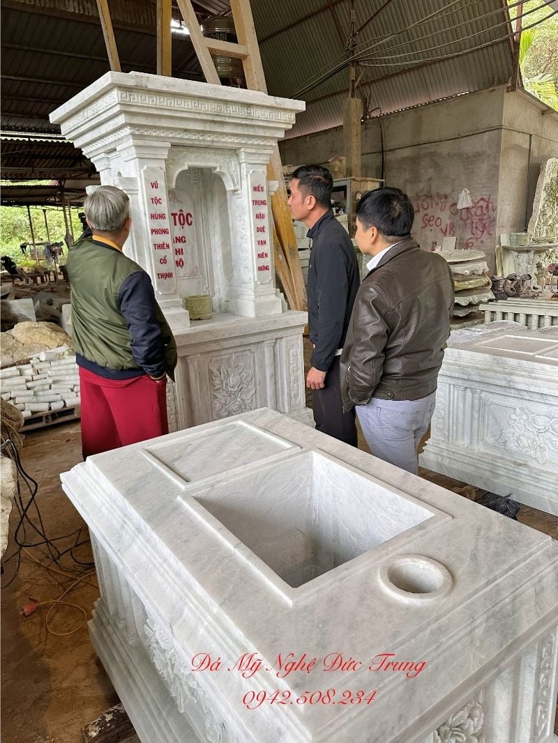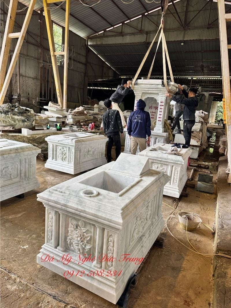 Khu lăng mộ đá trắng Marble phong cách Âu hiện đại là một trong những công trình tiêu biểu được Công ty Đá Mỹ Nghệ Đức Trung thiết kế và gia công theo yêu cầu riêng của gia chủ. Tổng thể công trình mang hướng tiếp cận mới – tối giản nhưng vẫn giữ được sự trang nghiêm cần có của không gian tâm linh.